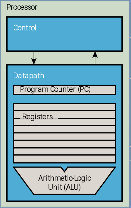 The control unit (CU) is the portion of the processor that tells the datapath what needs to be done. It describes the signals needed to ensure the elements of the datapath correctly execute an instruction.