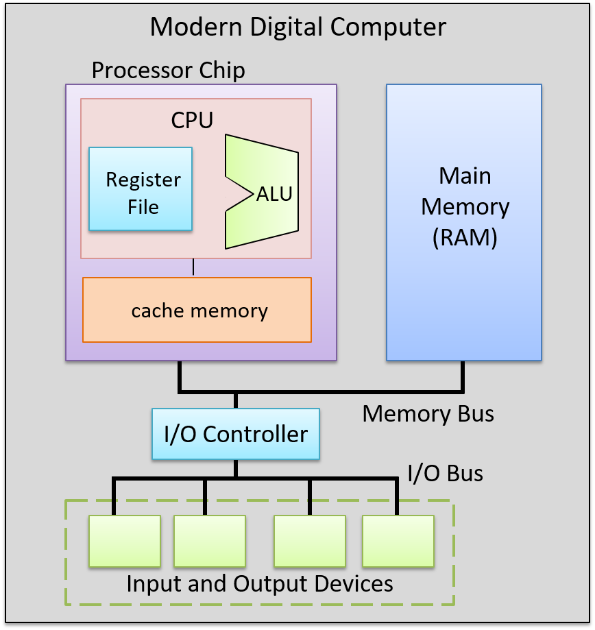 - Memory to load data (very slow compared to CPU speed)